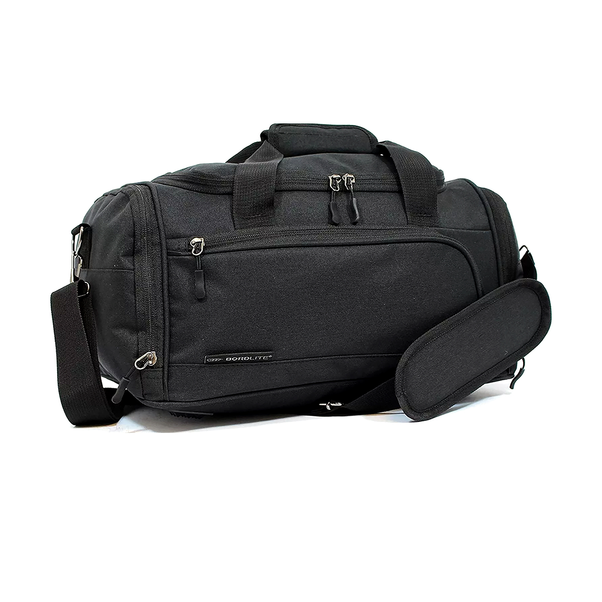 Travel hassle-free with this compact and lightweight (0.5kg) under-seat holdall, perfect for weekend trips and airline carry-on. Measuring 40x20x25cm with a 20L capacity, it fits most airline size requirements. Features include a front zip pocket, adjustable shoulder strap, grab handles, and a rear sleeve to secure over a trolley case. Made from durable 600D polyester, it's built for convenience and style.
