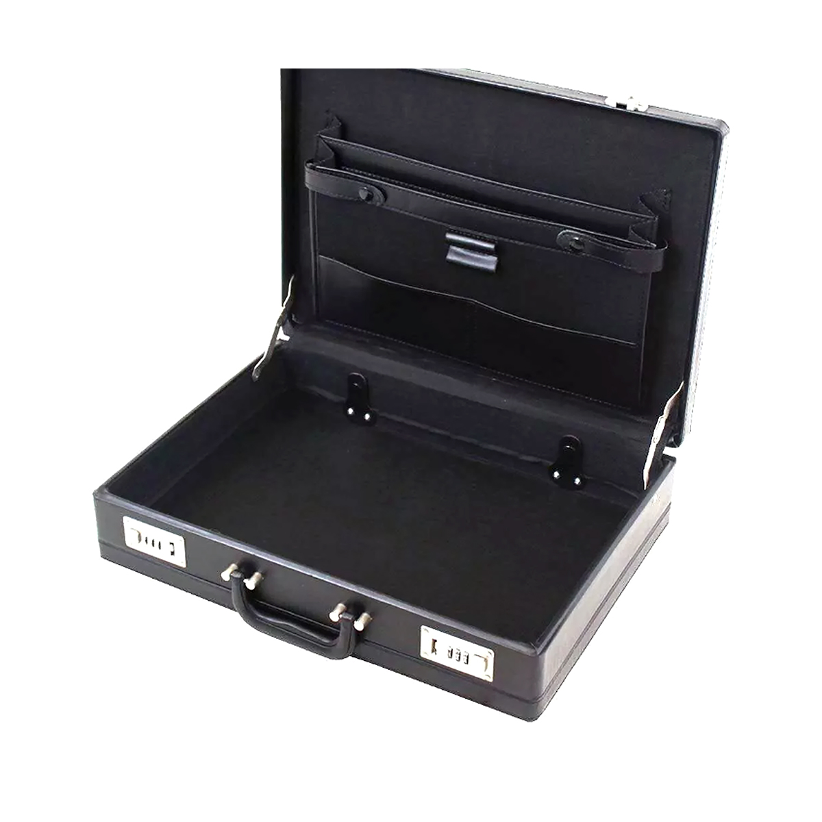 Upgrade your work essentials with this premium faux leather business briefcase. Designed for professionals on the go, it features a spacious main compartment perfect for laptops, A4 folders, and business documents. With two interior document sleeves, a dedicated stationery pocket, and a Velcro-secured flap pocket, it keeps your essentials organized. Durable, hard-wearing, and expandable, it's ideal for daily use and business trips.