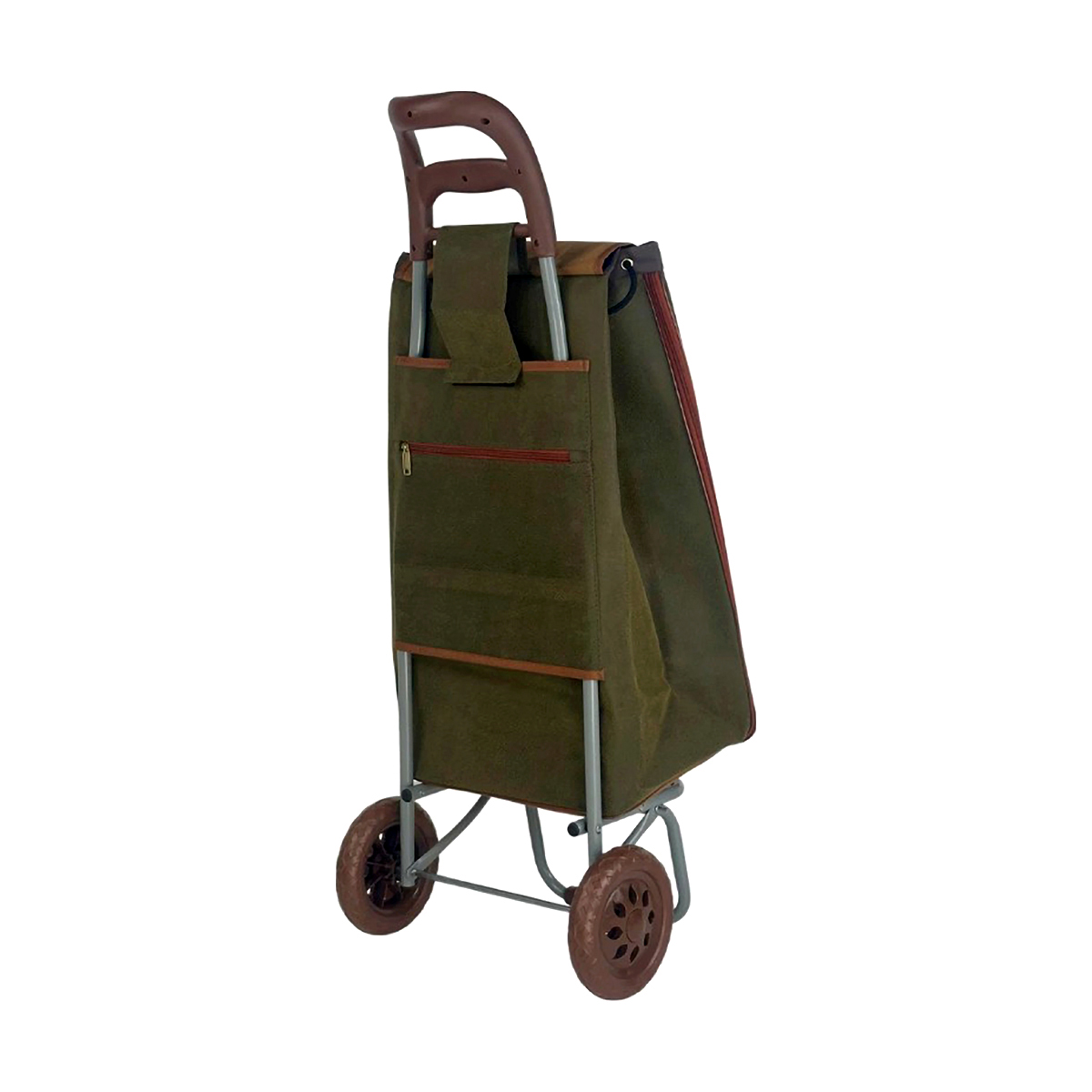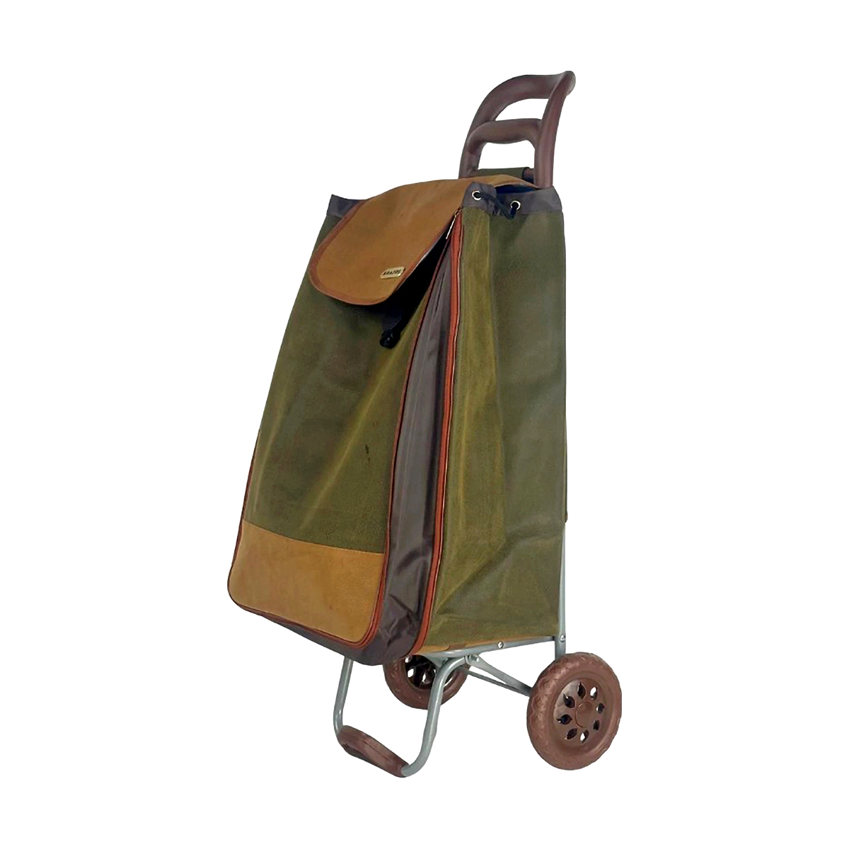 Tired of juggling heavy bags? This classic shopping trolley is your new go-to for effortless errands. Built with a sturdy frame and large, durable wheels, it’s designed to handle a full load with ease. The bag features a handsome olive green color with brown accents, giving it a timeless, understated look. With a spacious interior and a secure top flap, this trolley is the perfect blend of style and practicality for all your shopping need
