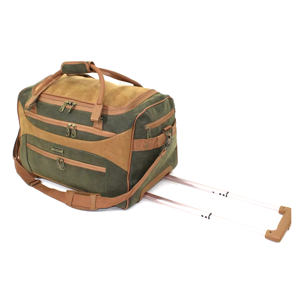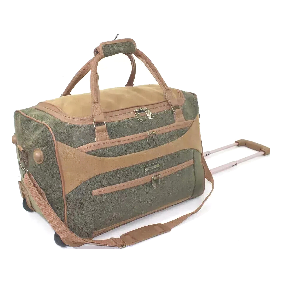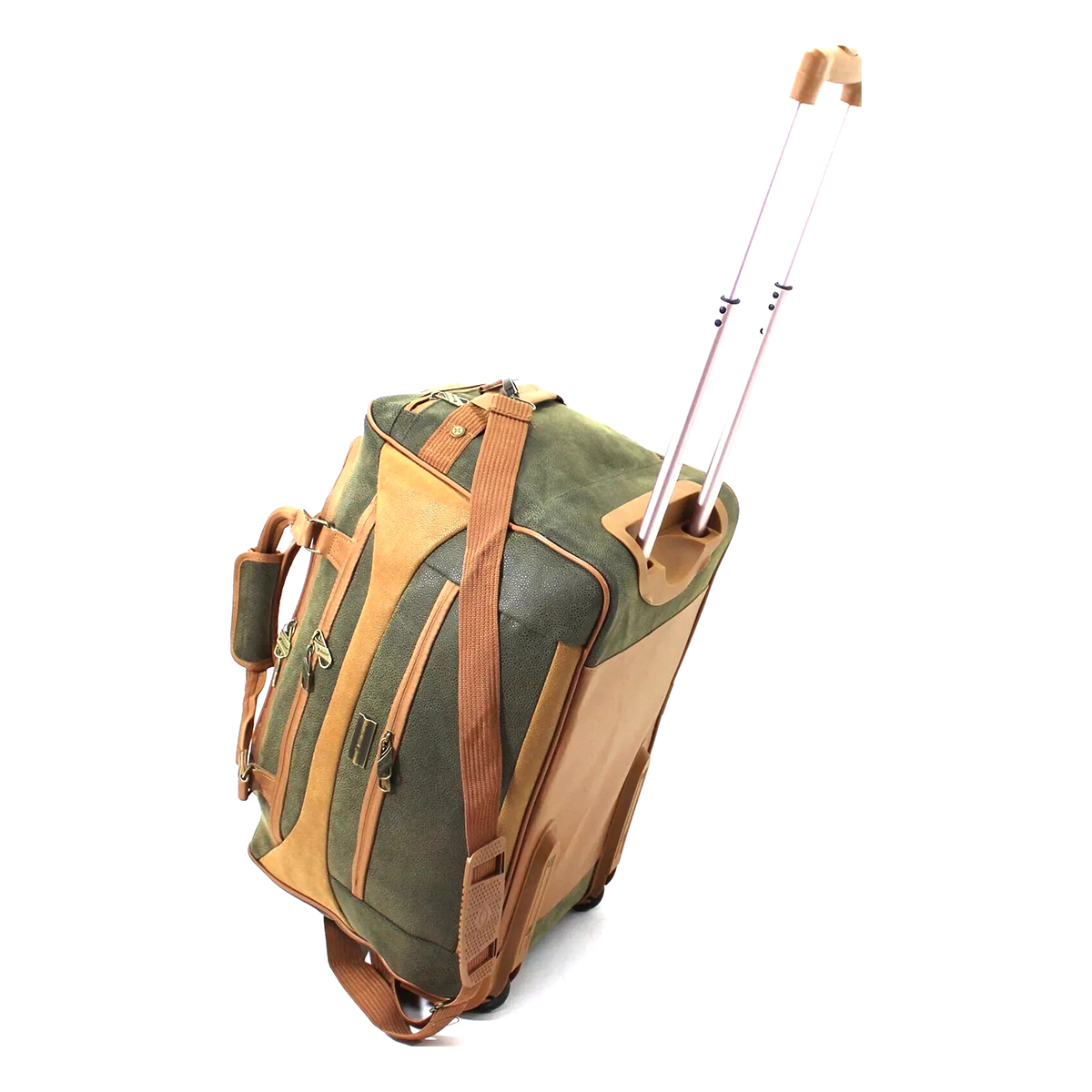 Travel in style with our premium wheeled holdall, available in 34", 30", and 20" sizes. Designed for durability and convenience, it features a lockable twin-zip main compartment (lock not included), two large front zip pockets, and a push-button telescopic handle for smooth mobility. The Velcro twin carry handles and padded end handle offer versatile carrying options, while corner protectors and a PVC step guard enhance durability. Folds flat for easy storage.